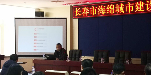 會上,市規劃院總規劃師劉志生首先介紹了《長春市海綿城市專項規劃2016-2030》海綿城市指標情況。隨后,我院環境建筑分院副院長孫宏亮,作為海綿城市技術中心主任,向參會人員詳細解讀了國家、省市海綿城市相關建設政策要求,解析了如何計算現有海綿面積,如何填報2019年海綿建設計劃;全國各地海綿城市建設情況以及我市海綿型道路、勞謙公園、水文化園等海綿城市建設情況;國內最新海綿技術產品的普及及應用情況。通過詳細的介紹,與會人員進一步加深了海綿城市建設對防止內澇、減輕市政管網壓力、修復生態環境重要性的認識。