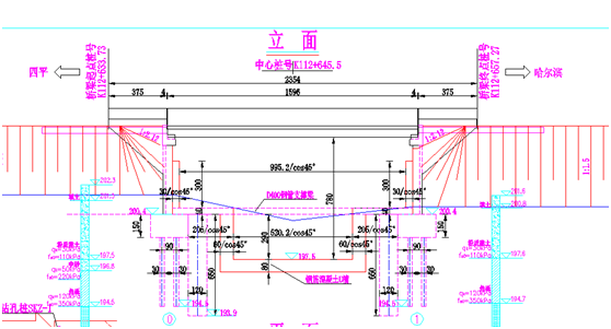 采用橫撐支撐橋臺后,采用鋼筋混凝土U型槽頂進,加固橋臺基礎(chǔ),從而降低基礎(chǔ)深度,達到降低水利高程的目的。