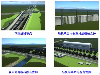 U型槽:下穿繞城高速,U型槽長度約295m,橫斷面凈寬度約為28m;