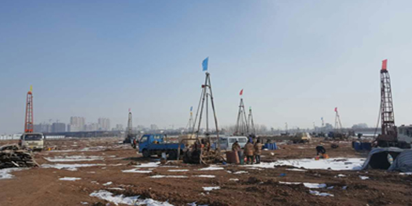 春節剛過,我公司就多次召開生產技術會議,科學組織勘察方案、合理安排外業施工。正月十六,組織設備進場開始外業鉆探工作。目前,已投入15臺鉆探設備,陸續還要增加鉆機,確保按照甲方要求的工期完成任務。該工程得到了院領導的高度重視,金慈云書記多次來到公司和工地現場進行視察及指導工作,項目負責人王治忠、專業副總孫光、公司經理李玉東,天天下工地,關注工程進展、關心員工冷暖,公司員工得到莫大的鼓舞,工作上更有了動力和干勁兒。雖然現在這個季節春寒料峭,但是工地上卻是熱火朝天。同志們紛紛表示,一定會克服困難,圓滿完成此次勘察任務。