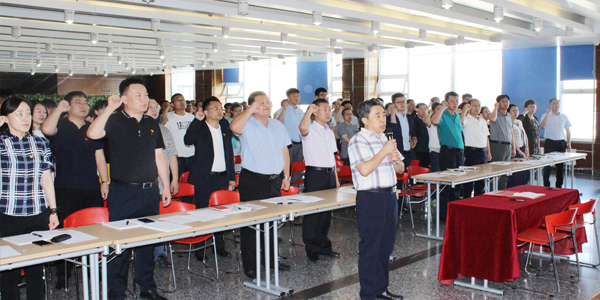 會上,黨委書記宋剛代表院黨委分別與各黨支部書記和各部門領(lǐng)導(dǎo)簽訂《2018年度黨支部工作目標(biāo)責(zé)任狀》和《一崗雙責(zé)責(zé)任狀》,并作了重要講話,他指出,新時(shí)代下,面對新的使命,每一名黨員都要有新的擔(dān)當(dāng)、新的作為,不忘初心,牢記使命,用科學(xué)的態(tài)度、奉獻(xiàn)的精神、務(wù)實(shí)的作風(fēng)、過硬的本領(lǐng),爭創(chuàng)一流的業(yè)績,全力以赴打造3A企業(yè)。最后,會議在《沒有共產(chǎn)黨就沒有新中國》的歌聲中圓滿結(jié)束。