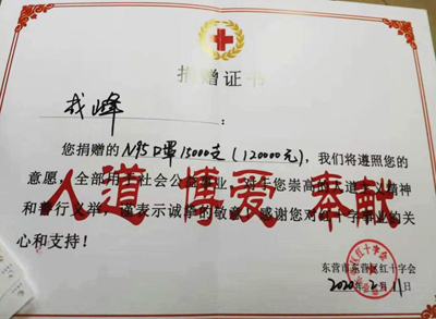 公司股東劉凱身在老家、心系疫情,面對(duì)當(dāng)前的新冠肺炎疫情,以自己的初心和使命,踐行社會(huì)責(zé)任,積極做好疫情防控工作的同時(shí),發(fā)揚(yáng)“一方有難、八方支援”的高尚情操,特別向東營(yíng)市東營(yíng)區(qū)紅十字會(huì)捐贈(zèng)15500支N95口罩(124000元)。