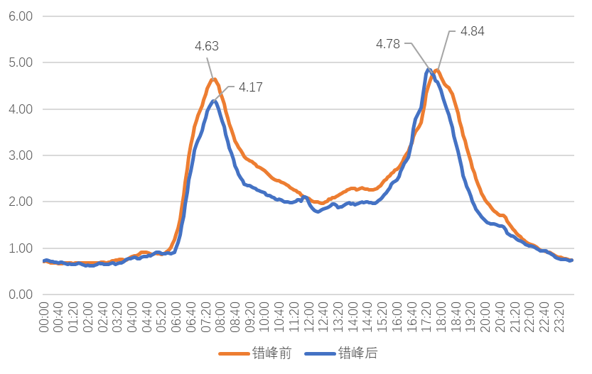 錯峰上下班:為緩解早晚高峰交通壓力,改善居民出行環境,在首輪錯峰出行的基礎上,進一度深化錯峰出行方案,將覆蓋在長省直機關、市直機關相關工作人員,覆蓋人群增加6.5萬。通過調整錯開上學高峰、上班高峰,減少車輛集中出行,達到緩解早晚高峰交通壓力的效果。利用交通大數據平臺分析錯峰后交通運行狀況,全市整體交通壓力降低約10%。市民普遍反映早高峰通勤時間減少,交通擁堵明顯改善,錯峰方案效果顯著。